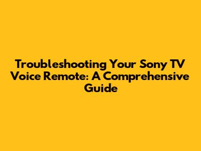 Fix Sony TV Voice Remote Issues: Troubleshooting Guide