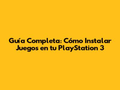Guía Completa: Cómo Instalar Juegos En Tu PlayStation 3