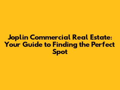 Hey guys! So, you're on the hunt for commercial real estate for sale in Joplin, Missouri? That's awesome! Joplin is a seriously underrated gem when it comes to business opportunities, and finding the right spot can really make your venture soar. Whether you're looking to set up shop, expand your current operations, or make a strategic investment, this guide is all about helping you navigate the Joplin commercial real estate market like a pro. We'll dive deep into what makes Joplin so attractive, the types of properties you might find, and some savvy tips to ensure you snag the best deal possible. So, buckle up, because we're about to unlock the potential of commercial real estate in Joplin, Missouri!