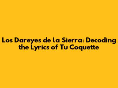 Hey guys! Ever found yourself humming along to a song and thinking, "What exactly are they saying?" Well, that’s what we're diving into today. We're breaking down the lyrics of "Tu Coquette" by Los Dareyes de la Sierra. This song has been stuck in everyone's heads, and for good reason. Let's get into the nitty-gritty and understand the story behind the music.