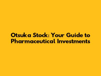 Otsuka Stock: Your Guide To Pharmaceutical Investments