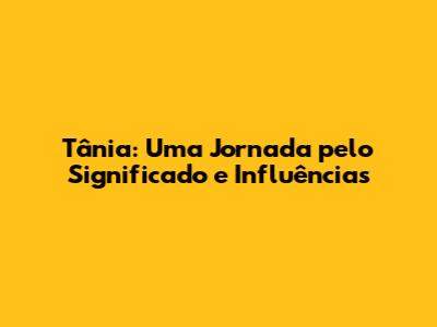 Tânia: Desvendando O Significado Do Nome E Suas Influências